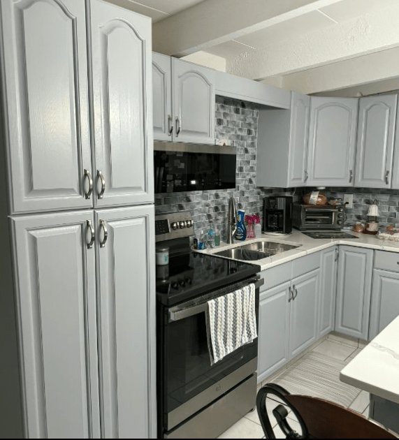Instead of replacing your cabinets, we restore and refinish the existing surfaces to give them a clean, modern look that holds up over time. Whether your cabinets are worn, outdated, or just need a refresh, our process delivers smooth, durable finishes that completely transform the space.